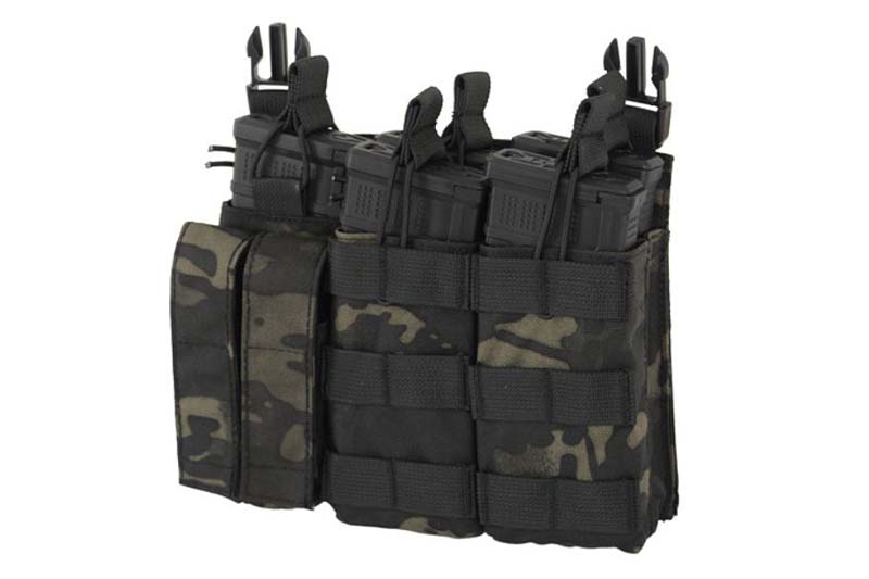 Torbica za kombinirani magazin može sadržavati 5x 5,56 magazina u stilu (M4 / AR-15 / M16 / ACR / FAMAS / SCAR-L / TAVOR / SA80 / Galil / Type 89 / F2000 / AUG) i 2x jednostruka ili dvostruka magazina pištolja (9 mm) ili druge dodatke. Otvorena torbica omogućava brzo promjenu šanžera, a dodatni gumeni konop s udobnim držačem štiti šanžer od pada. Kompatibilan sa velcro(čičak) platformama.