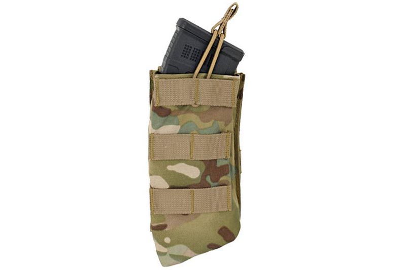 U torbicu za magazin mogu se smjestiti magazini tipa AK47 / AKM. Otvoreni dizajn osigurava brzo ponovno punjenje, a dodatni gumeni kabel s udobnim držačem štiti magazin od pada. Kompatibilan sa svim MOLLE platformama.