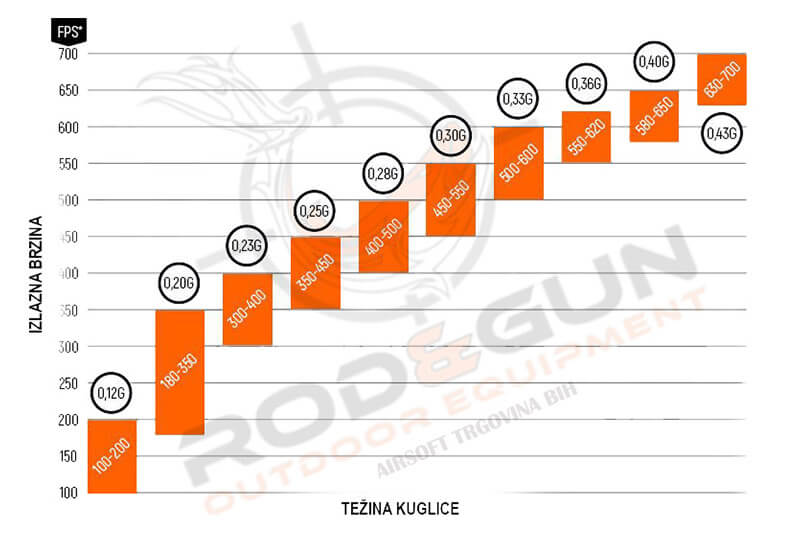 Visokokvalitetne precizne kuglice (BBs). Zahvaljujući posebnom proizvodnom procesu, kuglice se odlikuju vrlo dobrim fokusom hitaca.