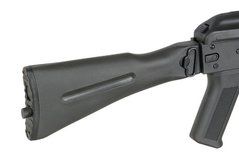 Serija Sports Line kompanije S&T nudi pristupačne, ali kvalitetne replike namijenjene početnicima i igračima koji traže laganu, pouzdanu pušku sa modernim funkcijama. Model AK-74M izrađen je od čvrstog polimera, sa bočno sklopivim kundakom i V3 gearboxom treće generacije, opremljenim sistemom za brzu zamjenu opruge i elektronskom jedinicom okidača (ETU). Ova replika zadržava autentičan izgled i robustnost poznate AK serije koju koriste i specijalne jedinice poput Spetsnaza.