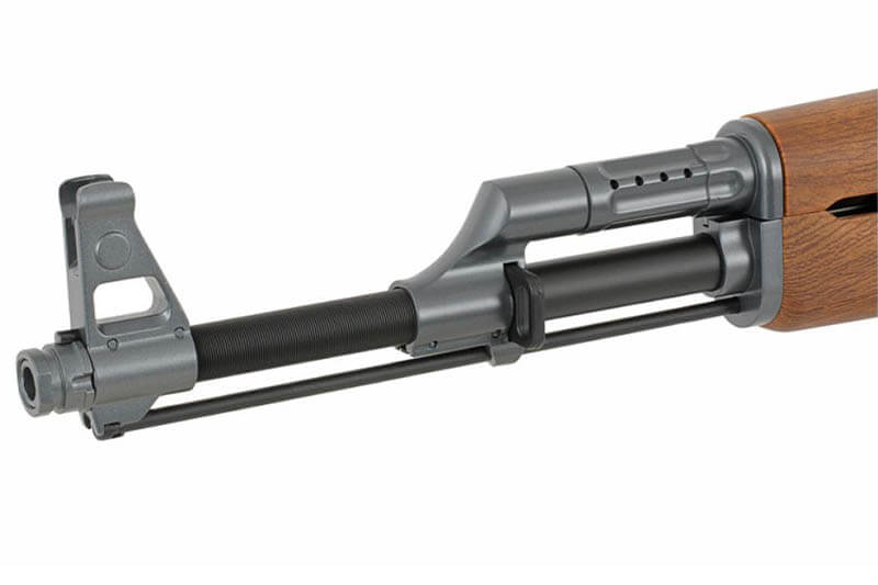 Airsoft replika AK47 je kvalitetna airsoft replika s težinom od 2435 g i crnom bojom. Izrađena je od aluminijuma i polimera, a dolazi s automatskim i pojedinačnim režimom vatre. Magazin modela je hi-cap, a izrađen je od čelika. Konektor baterije je mala Tamiya, a verzija gearboxa je 9 mm / V3 s čeličnim kliznim ležajevima čiji prečnik iznosi 7 mm. Replika ima serijski broj.