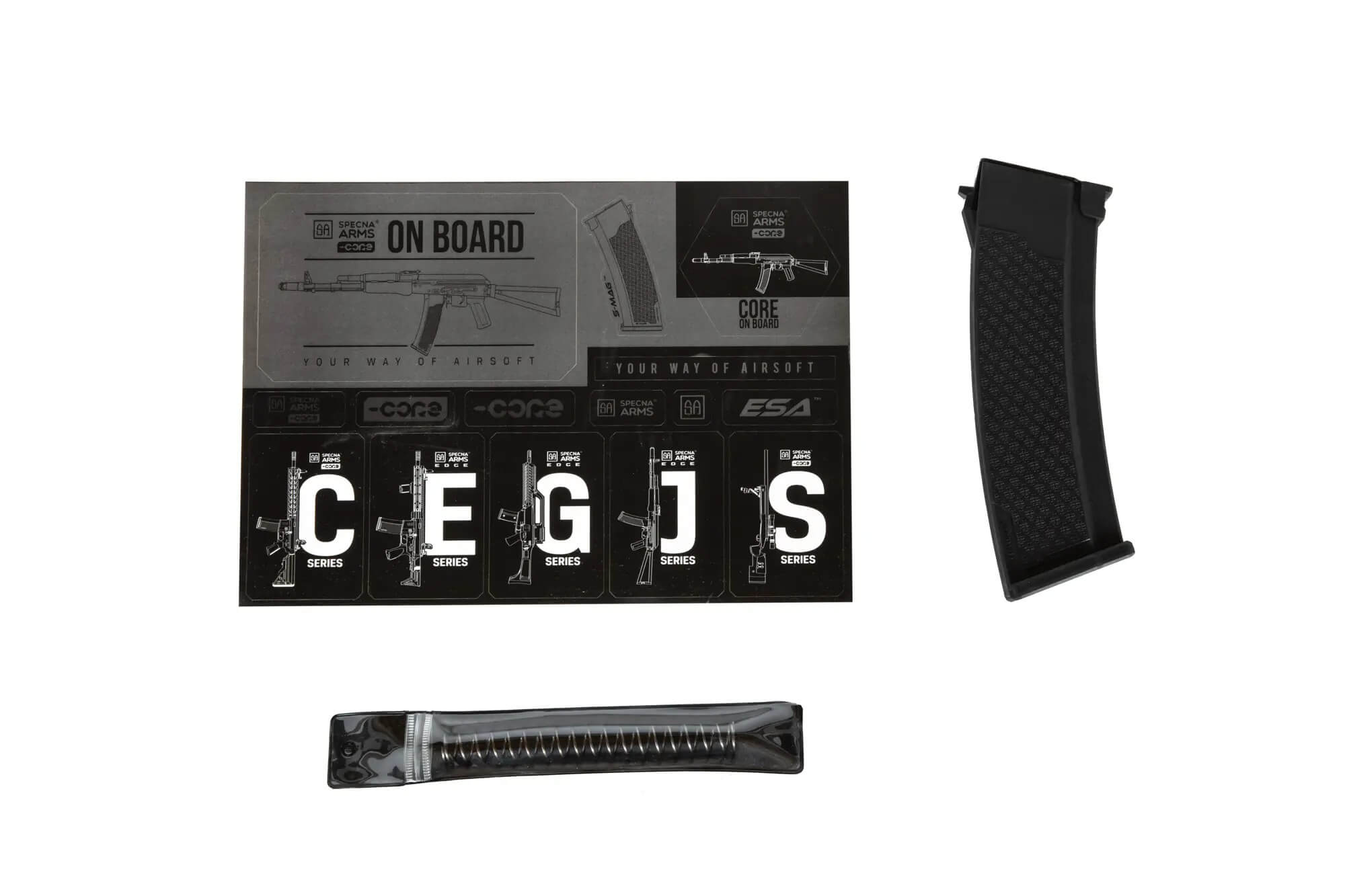 Specna Arms, kako bi ispunio očekivanja svojih kupaca, predstavlja liniju CORE™ – jedinstvenu seriju replika koja uvodi novi kvalitet na tržište replika za airsoft. Povoljna cijena u kombinaciji s inovativnim sistemom brze promjene opruge, izvrsnom izvedbom odmah iz kutije i visokokvalitetnim komponentama čini ovu seriju izvrsnim izborom kako za početnike tako i za iskusne igrače airsofta.