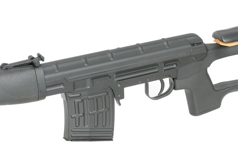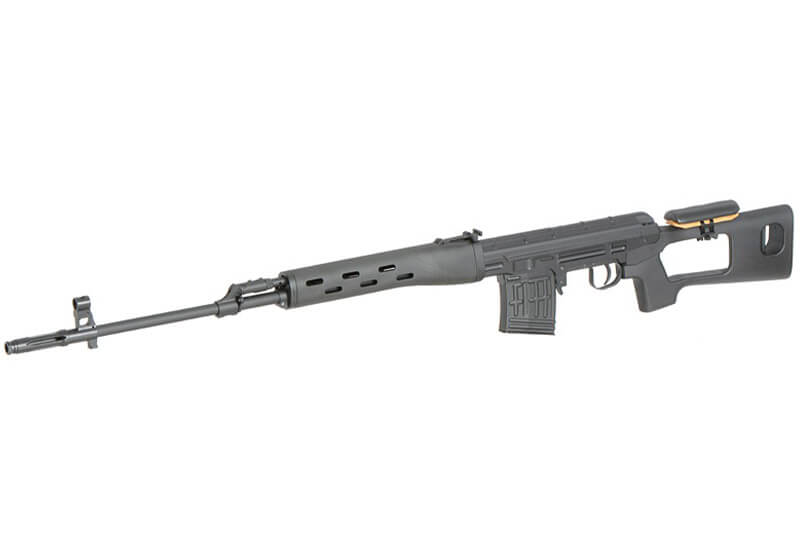 Replika ruske SVD snajperske puške u opružnoj(bolt) verziji donosi vrhunsku izradu, realizam i stabilnost. Kombinacija metalne konstrukcije pruža autentičan osjećaj klasične sovjetske puške iz 1990-ih, čineći je odličnim izborom za snajperske entuzijaste i airsoft takmičare.