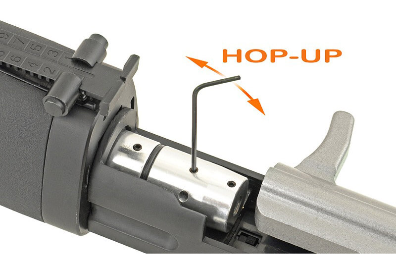 - Podesiv Hop-Up sistem – omogućava precizno podešavanje putanje BB kuglica