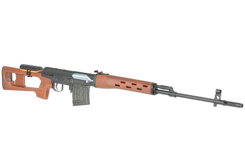 Replika ruske SVD snajperske puške u opružnoj(bolt) verziji donosi vrhunsku izradu, realizam i stabilnost. Kombinacija metalne konstrukcije pruža autentičan osjećaj klasične sovjetske puške iz 1990-ih, čineći je odličnim izborom za snajperske entuzijaste i airsoft takmičare.
