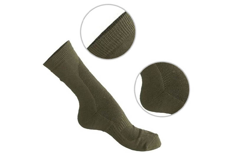 Mil-Tec trekking čarape izrađene su po najnovijim standardima s novim tehnologijama. Kako bi se osigurao visok nivo udobnosti, čarape su napravljene sa CoolMax® tehnologijom, koja nudi poboljšani transport vlage i povećanu površinu isparavanja. Osim toga, proizvođač je koristio tanju tkaninu na potkoljenici i gornjem dijelu stopala kako bi se noga bolje prilagodila cipeli. Međutim, na peti i na dnu stopala korištena je posebna tkanina kako bi se osigurala dobra ventilacija.