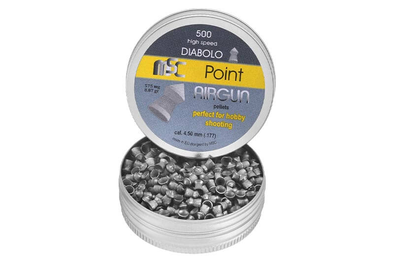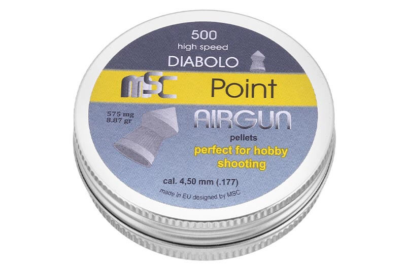 Dijabole za zračno oružje. U metalnoj kutiji od 500 metaka kalibra 4,5 mm sa “šiljatom” glavom. Namjenjeno je strijelcima i lovcima, koji koriste i jače zračno oružje izlazne brzine metaka do 280 m/s (do 20J). Pogodni su i za natjecanja u disciplinama FIELD TARGET ! Težina metka 0,575g (8,87gr). Proizvod vrhunske kvalitete.