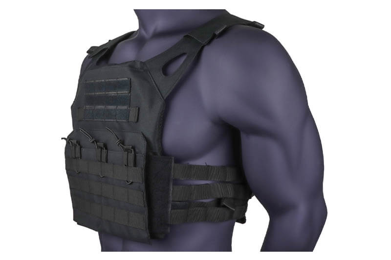 Plate Carrier ima ugrađenu, univerzalnu torbicu u koju možete pohraniti 3 šanžera M4/M16, međutim, AK tip magazina su također kompatibilni. Magazini se drže na mjestu gumenim trakama – takvo rješenje omogućava brz pristup do njih i promjenu spremnika po potrebi.