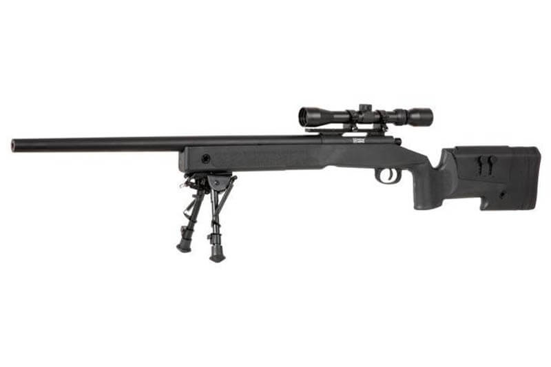 Replika snajpera M24 odlikuje se jednostavnim i pouzdanim mehanizmom za zatezanje, što znači da je repliku potrebno ponovo napuniti prije pucanja. Replika je izrađena od metala i ojačanog polimera. Dijelovi izrađeni od metala uključuju čitav set vanjske cijevi, zajedno s komorom, okidačem i ručkom za punjenje, kao i RIS šine i sve montažne elemente poput vijaka. Šasija s kućištem, jastučićem i magacinom izrađena je od čvrstog polimera. Podloga za odlaganje sadrži udoban, gumeni jastučić, čija se debljina može podesiti pomoću zamjenjivih prekrivača. U kombinaciji s podesivim jastučićem za obraz omogućava prilagođavanje zaliha prema željama korisnika.