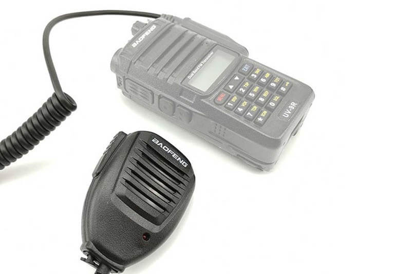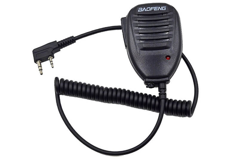 MIKROFON SA ZVUČNIKOM PTT. Mikrofon za radio opremljen utikačem tipa Kenwood. PTT takođe ima priključak za mini priključak za povezivanje slušalica.