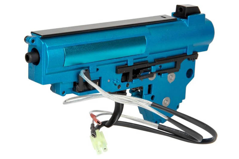 Kompletan, ojačan gearbox V3 namijenjen za AK replike. To je idealno rješenje za ljude koji žele kupiti kvalitetan gearbox po razumnoj cijeni. Okvir je prilagođen za upotrebu sa kliznim ležajevima od 8 mm i zahvaljujući ojačanoj konstrukciji na najslabijim mestima može se koristiti u kombinaciji sa jačim oprugama. Gearbox ima kompatibilan sistem brze promjene opruge.