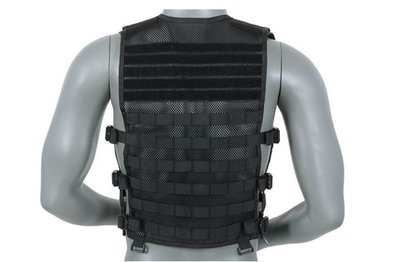 U gornjem dijelu Molle trake su izrađene od velc-a, tako da možete lako pričvrstiti logo jedinice. Prsluk je upotpunjen sa četiri trake koje se lako mogu pričvrstiti na taktički pojas. Prednost je lakoća podešavanja dužine ruku kroz izdržljiv velc. i širinu u opsegu kroz podesive trake.