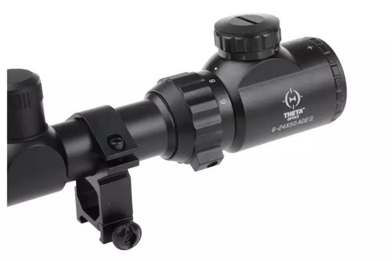 Optika Theta Optics ™ jamstvo je visoke kvalitete po razumnoj cijeni. Zatvoreno u izdržljivu, metalnu kućišnu prozirnu optiku s križom tipa mil-dot kao mi podesivim zumom. Zbog križanog osvjetljenja (crveno, plavo ili zeleno) opseg se može uspješno koristiti i za dnevne i za noćne operacije. Pokreće ga baterija CR2032 (uključena u set). Ciljni križ može se glatko regulirati vodoravno i okomito. Proizvod je postavljen na standardnu RIS šinu od 22 mm.