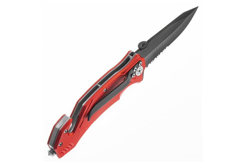 Preklopni nož za spašavanje opremljen funkcionalnim razbijanjem stakla i rezačem pojasa. Namijenjen je kako za svakodnevni rad tako i za upotrebu u kriznim situacijama. Oštrica sa tanto profilom izrađena je od nerđajućeg čelika 440A. Djelomično nazubljena oštrica će olakšati rezanje kroz tkanine ili užad. Površina oštrice je prekrivena mat crnim premazom. Nož se otvara perajem ili diskom za palac. Oštrica je zaključana Linerlock mehanizmom.