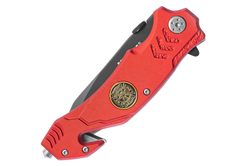 Aluminijske ručke s neklizajućim, teksturiranim žljebovima jamče siguran hvat. Nož je opremljen opružnom kopčom za nošenje. Na prednjoj oblogi nalazi se amblem vatrogasne brigade.