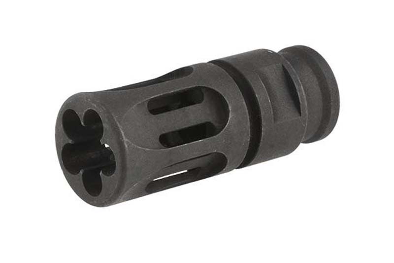 Razbijač plamena u potpunosti izrađen od čelika. Razbijač ima lijevi navoj od 14 mm, što ga čini kompatibilnim sa većinom ASG replika.