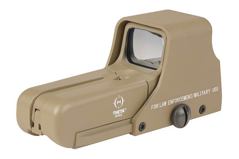 Theta Optics TO552 red dot se napaja sa dvije AA baterije, čija je konstrukcija napravljena po uzoru na holografski križić. Korisnik može izabrati crvenu ili zelenu končanicu. Proizvod vam omogućava da radite danju ili noću. Tačka ciljanja može se lako regulirati horizontalno i vertikalno. Takođe ima nekoliko stepeni intenziteta. Red Dot, koji je dizajniran da se montira na standardnu RIS šinu od 22 mm, pomaže vam da ciljate brzo i precizno. Sve je zatvoreno u izdržljivo metalno kućište.