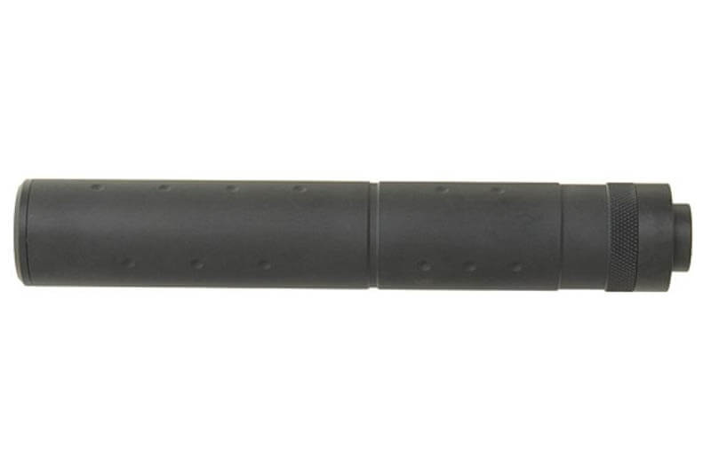 Prigušivač od metala, prilagođen za montažu na bilo koju repliku sa cijevi koja se završava standardnim navojem od 14 mm. Prigušivač ima navoj u suprotnom smjeru od kazaljke na satu.
