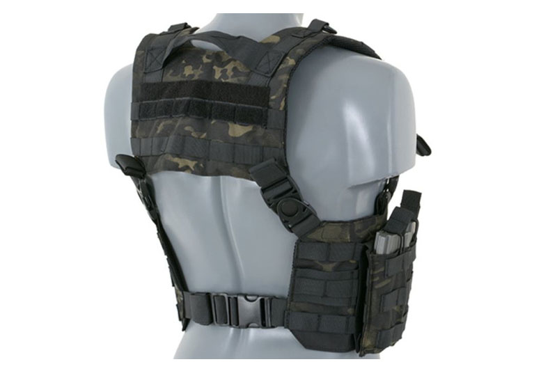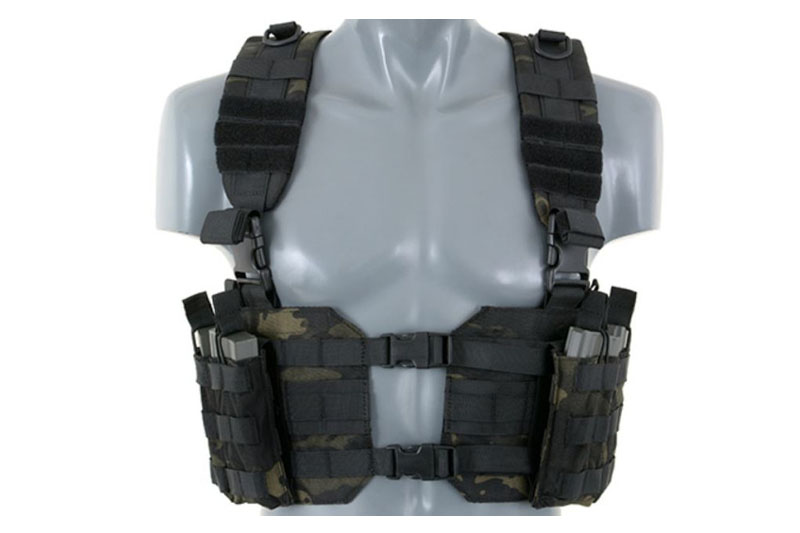 Chest Harness naširoko koriste profesionalni vojnici za držanje streljiva i drugih osnovnih predmeta. Chest Harness ima središnji QR zatvarač za jednostavnije uklanjanje opreme s vašeg tijela. Podesive podstavljene naramenice i podesivi H leđni remen omogućuju ovu vrlo prilagodljivu opremu kako bi odgovarala operateru bilo koje veličine.
