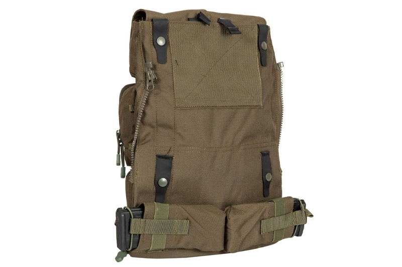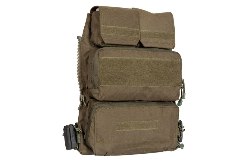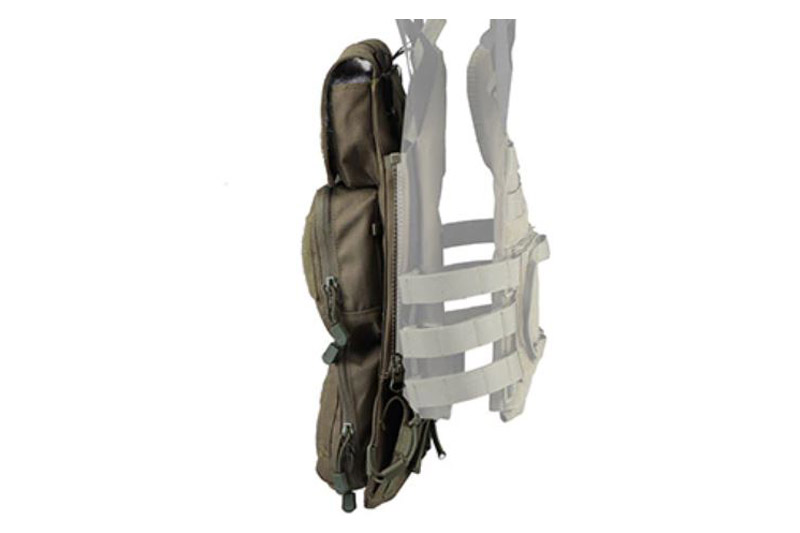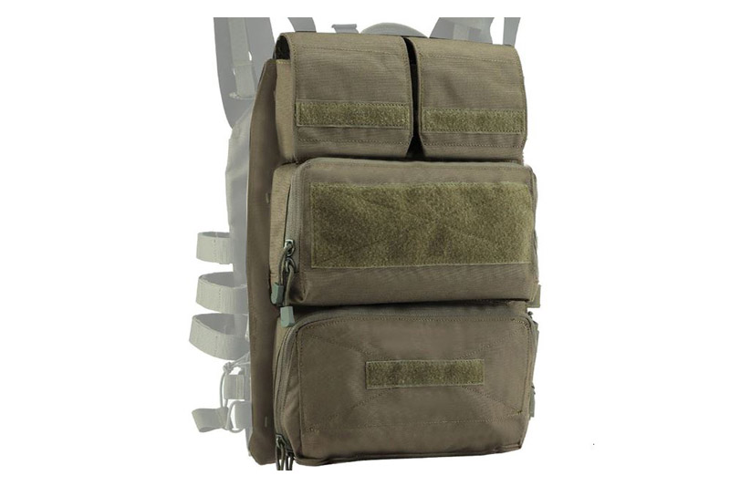 Zip panel ruksak unaprijed konfiguriranih torbica koji se zatvaraju na stražnju stranu. Dva džepa sa VELCRO preko gornje strane, široka torbica u sredini i ravna široka torbica na preklop na dnu. Koristite više panela sa patent zatvaračem za različite vrste rada i brzo prelazite između njih. Sadrži ugrađeni džep za alat za hidrataciju i dva bočna džepa magazine(Šanžere).