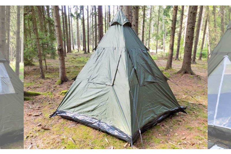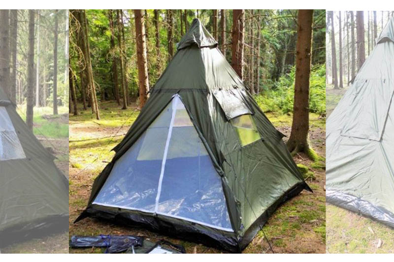 Tipi šator za 4 osobe inspiriran Indijancima TIPI sa 4 prozora dvostrane konstrukcije – mreža i folija. Izrađen od poliestera 190T sa PU slojem koji osigurava zaštitu od vode i vjetra. Odbojnost od 1000 mm garantuje zaštitu od intenzivne kiše. Čvrsta podloga ne propušta vlagu iz zemlje, a visoka ivica štiti šator od poplave tokom jake kiše.