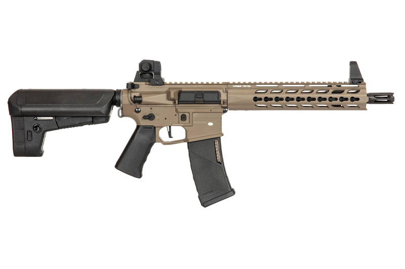 Na prednjoj strani možemo pronaći visokokvalitetni 10-inčni tanak TR210 aluminijski štitnik za ruke. Kompatibilan je sa MLOCK šinom, koji u kombinaciji sa dugačkom gornjom RIS šinom omogućava strijelcu da stavi bilo koju vrstu dodatne opreme koja odgovara njihovim željama ili zahtjevima misije.