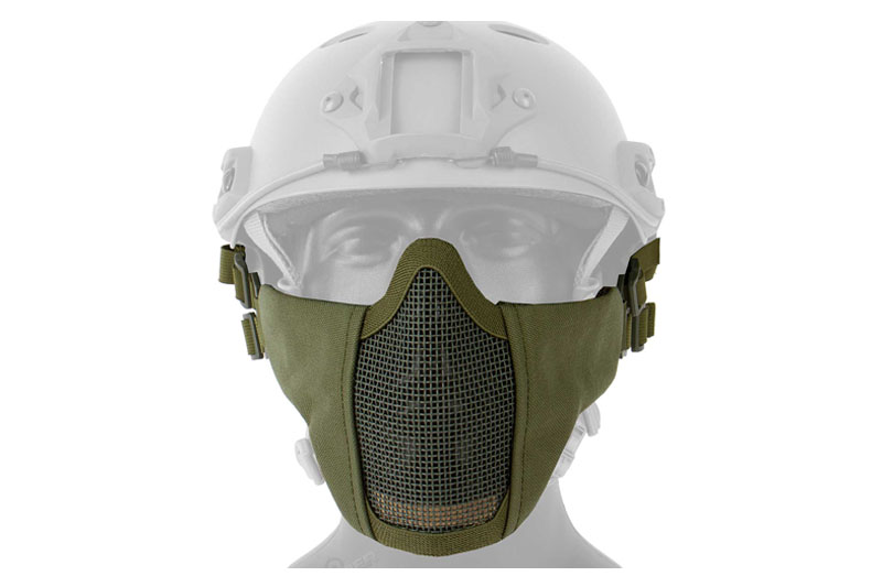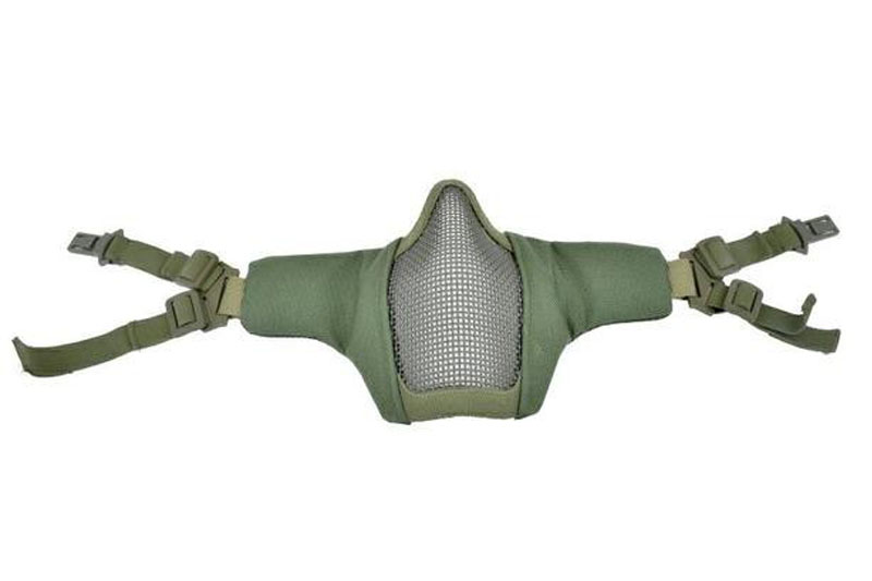 Polumaska za lice posebno za kacigu, “FAST” verzija. Ova stabilna mrežasta maska od jake čelične mreže štiti donji dio lica uključujući nos i relativno je čvrsta. Zahvaljujući podesivoj traci za glavu sa elastikom i čičak trakom, maska stoji čvrsto i sigurno. Dvije plastične kuke su sigurno pričvršćene na vašu FAST kacigu, a dvije trake su pričvršćene za stražnji dio kacige pomoću čičak trake. Rub maske je u potpunosti prekriven tkaninom. Pažljivim savijanjem, ova maska se također može prilagoditi korisniku.